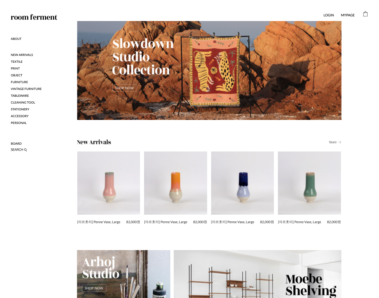 룸퍼먼트는 인테리어 소품뿐만 아니라 가구와 포스터, 라이프스타일 제품까지 국내 아티스트들과 해외 브랜드 제품까지 구경거리가 다양한 편집샵이에요. 저는 룸퍼먼트에서 아르호이 화병이랑 친구 카페 오픈 기념으로 포스터를 구매해 선물해주었는데요.